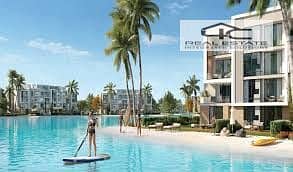 Ground floor chalet with garden direct lagoon open view prime location near the club down payment and installments available in Azha North Coast Ras El Hekma.