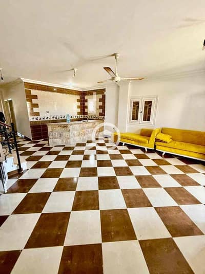 Aloy's chalet with furniture and appliances in Al-Rawda village, North Coast, kilometer 71, consisting of 3 bedrooms, 2 bathrooms, a reception, an American kitchen, and a private roof with an internal staircase.