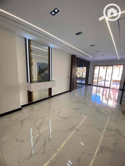 Twin house villa by the pool in the Village of Cairo University, North Coast, kilometer 74, consisting of 3 bedrooms, 2 bathrooms, a reception, an American kitchen, and a wonderful garden.