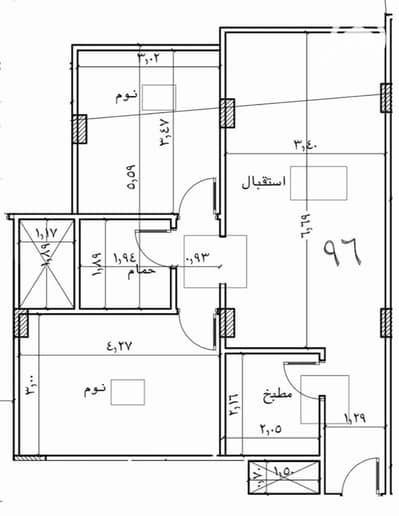 2 bedrooms + 2 bathrooms + kitchen + reception.