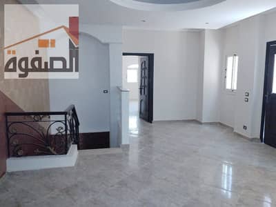 Ground floor (upper floor): 3 bedrooms (one master with ensuite bathroom and dressing room, and 2 bedrooms with ensuite bathrooms), office, living room, internal staircase, and external staircase with a balcony leading to the yard