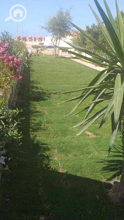 Twin house villa on the pool in the Village of University of Cairo, North Coast, Kilometer 74, consisting of 3 bedrooms, 2 bathrooms, a reception area, an American kitchen, and a wonderful garden.