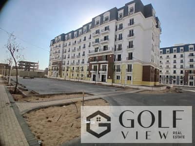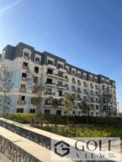For sale, a 140m apartment on the ground floor with a 95m garden, immediate delivery, and a direct view of villas in Mountain View iCity October.