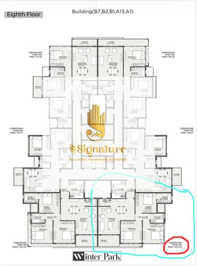 Apartment size: 156 sq m (3 bedrooms, including a master bedroom, 3 bathrooms, reception, and terrace).