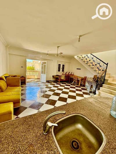 Aloua Chalet with furniture and appliances in Al-Rawda Village, North Coast, kilometer 71, consisting of 3 bedrooms, 2 bathrooms, a reception, an American kitchen, and a private roof with an internal staircase.