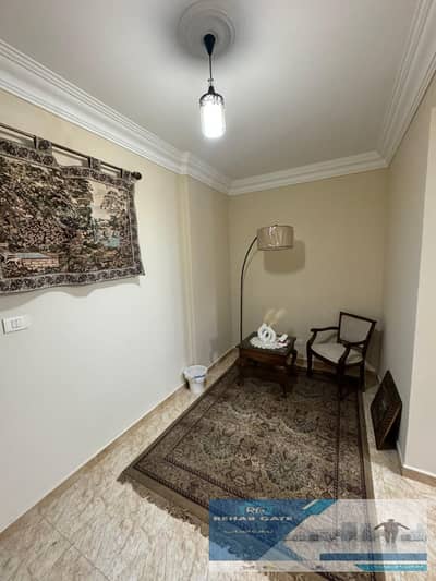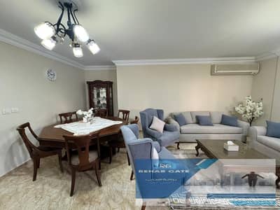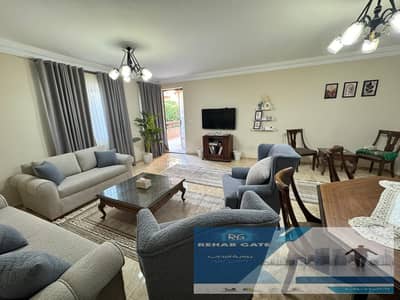 A furnished apartment is available for rent in Al-Rehab, area of 98 sqm + 50 sqm garden, in the old fourth phase. The apartment is fully furnished, with special finishes, complete with meters, facilities, appliances, and air conditioners.