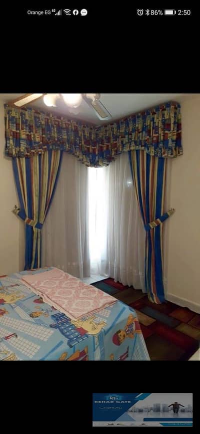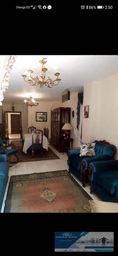 Furnished apartment for rent in Al Rehab City, ground floor with private garden, opposite Gateway Mall and the mosque. 90 square meters, consisting of 2 bedrooms, 1 bathroom, and a 50-square-meter private garden.