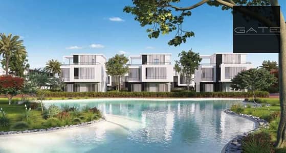 Twin house for sale at the lowest price in Goulz, 6th of October, prime location opposite New Giza, overlooking the lake and landscaped gardens.