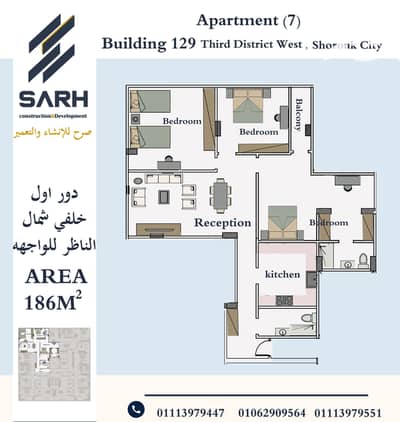 Apartment in the most prestigious neighborhoods of Al-Shorouk City, District 3, West 186m