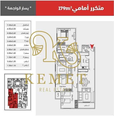 Immediate receipt 179m third floor second number from the main street, First Neighborhood, Home Land, New Cairo