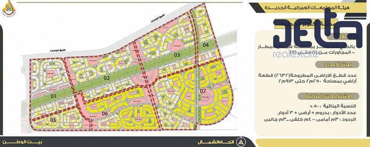 نسبة البناء: 50% للأرضي 55% للأدوار المتكررة 25% للروف