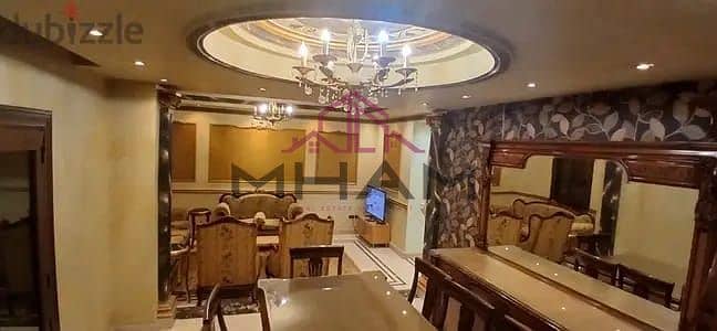 Furnished apartment for rent in Abu El Feda Compound, excellent location. 5 minutes from the American University, next to Al Rehab.