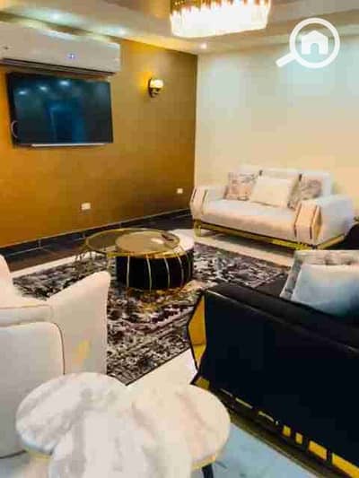 Furnished hotel apartment for rent in Degla Maadi in the Future Compound near all services, cafés, restaurants, and transportation. 3 bedrooms, 3 bathrooms, large living room, very chic entrance to the building, 2nd floor, elevator.