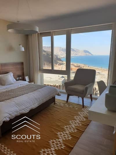 Chalet for sale Ready to move, 3 bedrooms, directly on the sea in one of the most prestigious villages in Ain Sokhna, fully finished with furni