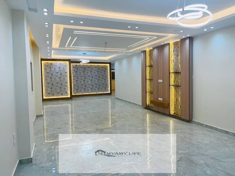 270 square meters consisting of (3 very large rooms without balconies - 2 bathrooms - 4-piece reception + a garden in a U shape of 200 square meters)