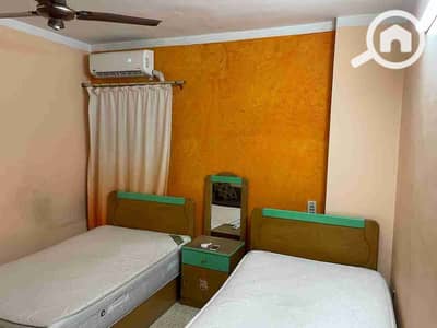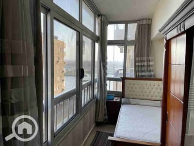 Furnished apartment for rent on the Corniche in Maadi Tura with a partial Nile view, consisting of three bedrooms, a reception, a bathroom, and a kitchen