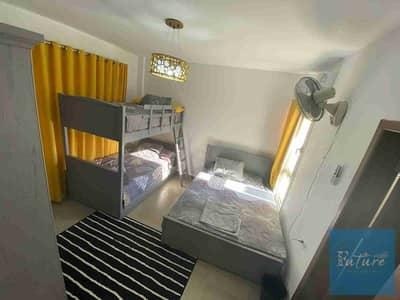For sale, ground floor chalet with garden in Amwaj Sidi Abdelrahman, 2 bedrooms, 2 bathrooms, direct pool view, immediate delivery. The lowest price for a ground floor chalet in Amwaj North Coast