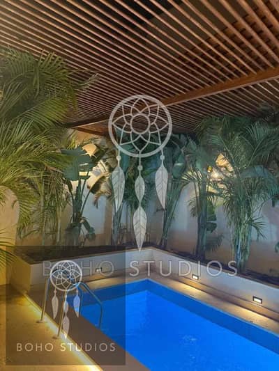 Private swimming pool with lighting – spacious reception – master room – guest bathroom – fully equipped American kitchen – pergola – 2 air conditioners – water filter – network enhancement.