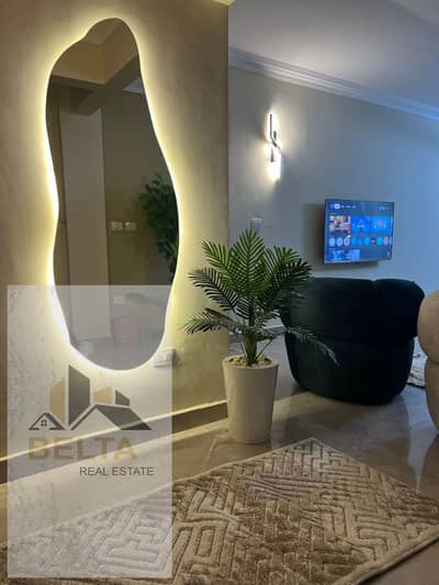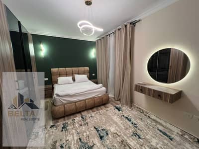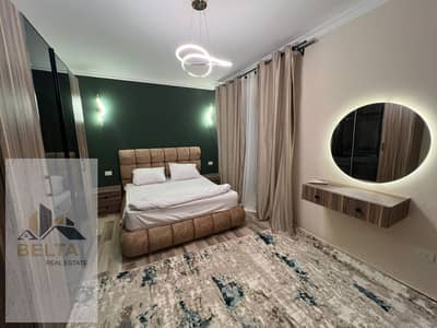 Furnished apartment for rent in Ganna Zayed 2 Compound. Ultra super deluxe finishing, modern furniture, very prime location, close to Hyper One, the highway, and the desert road.