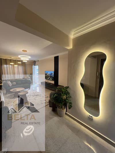 Furnished apartment for rent in Ganna Zayed 2 Compound. Ultra super deluxe finishing, modern furniture, very prime location, close to Hyper One, the highway, and the desert road.