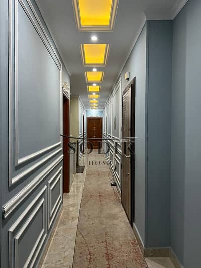 A prime duplex for sale, ultra-super-luxurious, in the most prestigious neighborhood of Obour City, District 6, second building from the Green Belt.