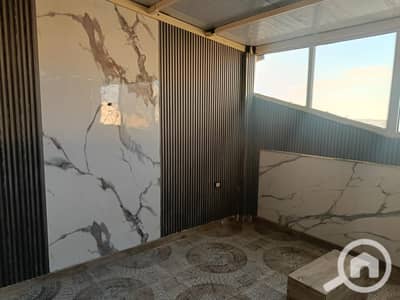 For rent: Rooftop apartment in the First Tourist Area, villa district, with a stunning view overlooking October Hills Compound and Mall of Arabia. 120