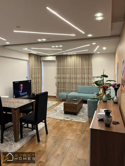 Furnished apartment for rent, 99 sq m, in Rehab City Compound, with a view, spacious layout, fully air-conditioned, and modern furnishings.