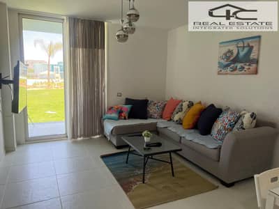 Ground floor chalet for sale with a garden in a prime location with a stunning open view fully furnished and equipped in Fouka Bay North Coast Ras El Hekma.
