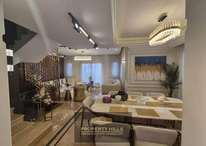 Receive your fully finished, ultra-super-lux townhouse villa immediately with a panoramic view overlooking the landscape, next to Palm Hills, October Park, and Rayos.