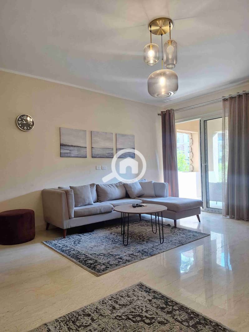 A very special fully furnished studio for rent in 90 Avenue Compound, ground floor with garden, modern furniture and ultra-super-lux finishing. The studio enjoys a direct pool view and a prime location inside the compound, ready for immediate move-in.