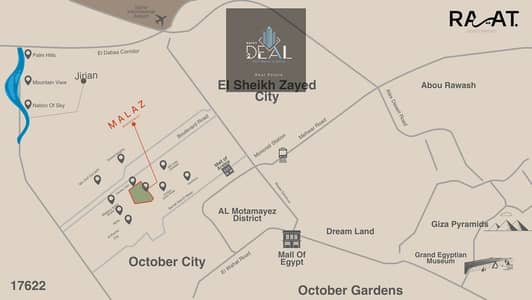 Own your apartment now in Malaz Compound by Rayat Developments in North October Extensions, a global location close to Dahshur Link, Mall of Arabia, and all main highways, within one of the fastest-growing investment areas.