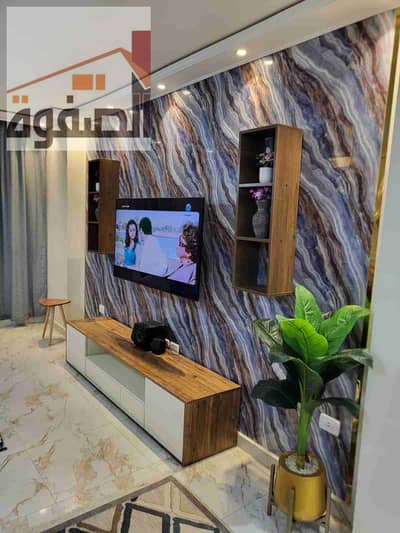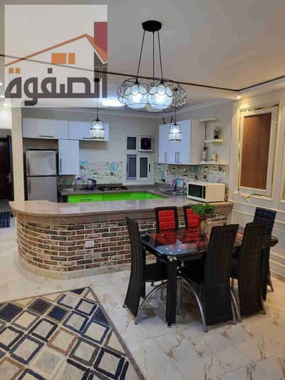 Furnished hotel apartment in Zahra Al-Maadi, surrounded by restaurants and international brands behind Carrefour and behind Mall of the Fifty. Very special location.