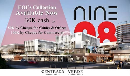 Clinic for sale 29 m in Nine 08 Mall on Boulevard Axis at the lowest price per sqm with the longest payment plan featuring a prime view 1% down