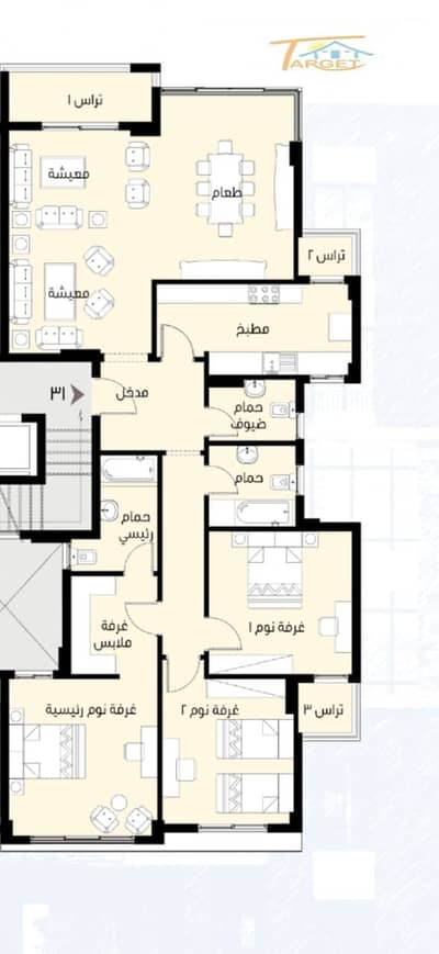 3 bedrooms (including a master bedroom with dressing room) – 3 bathrooms – Modern finishing