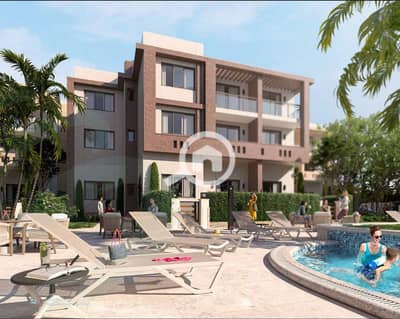 Apartment for sale in the Arena Blanca project in the Magawish area of Hurghada, on the Tourist Villages Road, next to Jungle Aqua Park and Alf Leila Wa Leila, and steps away from Senzo Mall, the largest shopping mall in the Red Sea.