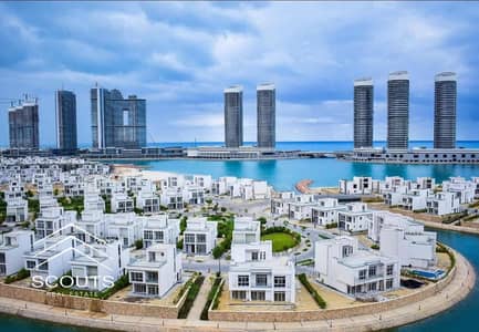 Villa with a prime location, sea view and lagoons, opposite Al Alamein Towers.