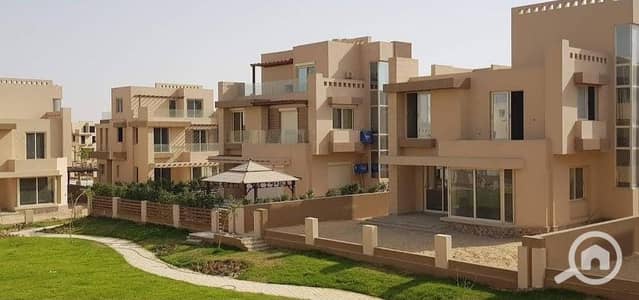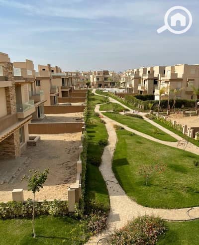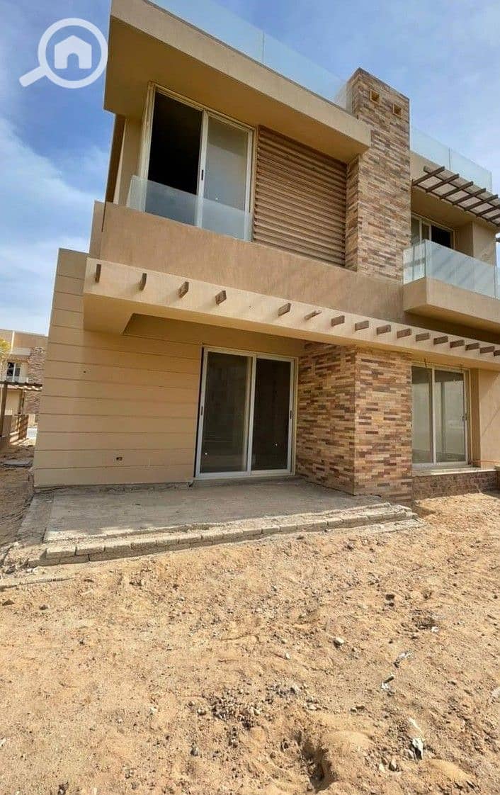 A townhouse for sale in Rios Compound with a built-up area of 250 sqm on a 195 sqm plot, featuring ground floor, first floor, and rooftop, with semi-finished construction.