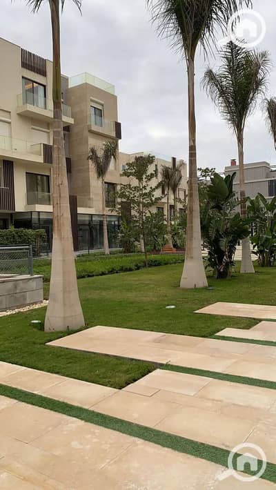 Apartment with a garden, spacious, ready to move in, fully finished with air conditioning, located in Beverly Hills, Aljariya, SODIC.