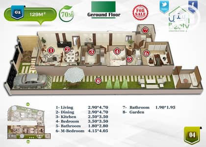 129m ground floor apartment with a 90m garden north of Rehab, steps from Suez Road & Creek Town Compound