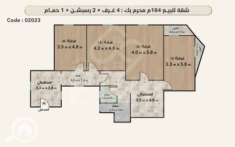 Apartment for sale, 164 sq m, Moharram Bek (El Rasafa Street), suitable for residential or commercial use. Price: EGP 4,200,000 cash. Agent: Ahmed Gamal: