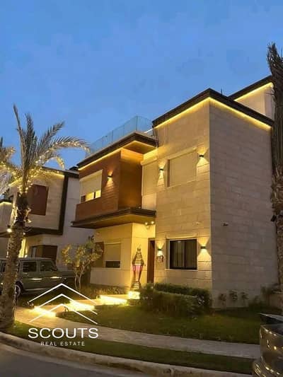 Ready-to-move-in twin house, 249 sq m, in the heart of Fifth Settlement, Golden Square area, next to the American University in the Azar compound, Pri