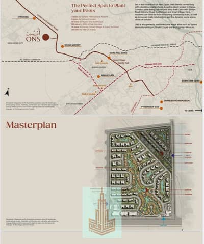 This luxurious residential unit is part of the Ons Project in New Zayed, spanning an area of 84 acres, located directly in front of Sphinx International Airport and just one minute away from the Cairo – Alexandria Desert Road, making it a highly strategic and easily accessible location. The project was meticulously designed by Alchemy, with master plans and 3D designs that provide a modern and fully integrated living environment.
