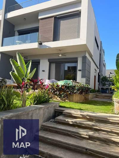 Corner townhouse with private garden for sale in La Vista Patio Town, Fifth Settlement, next to AuC