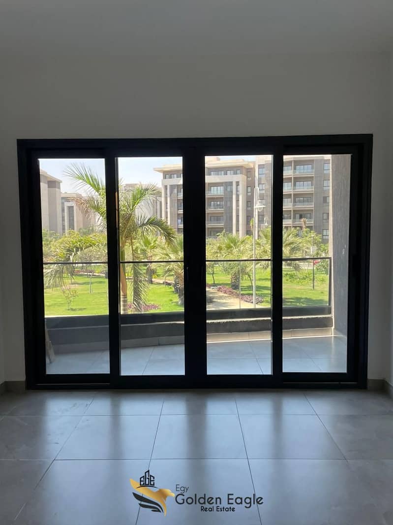 Apartment for rent in Madinaty, 84 sq m, semi-furnished, in Privado compound, large garden view.