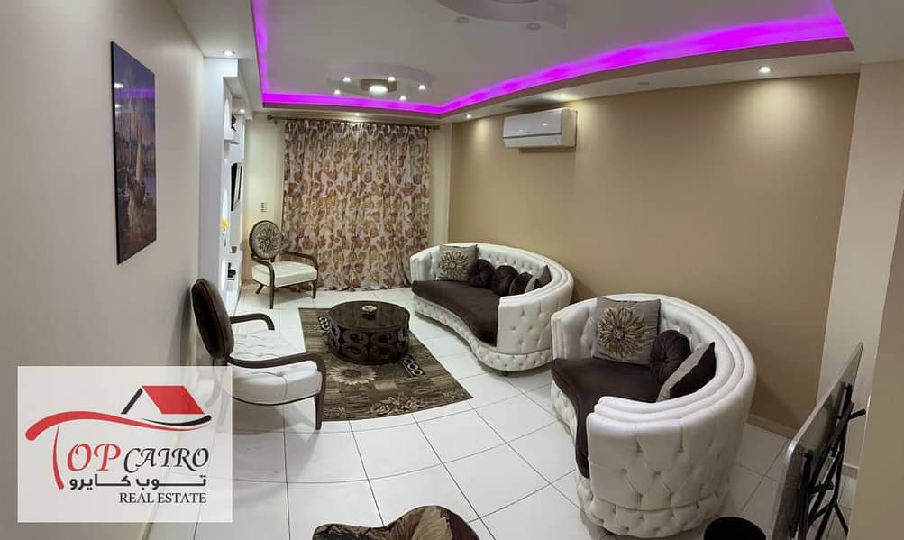 A furnished apartment for rent in Madinaty B2, with an area of 107 sqm, fully air-conditioned.