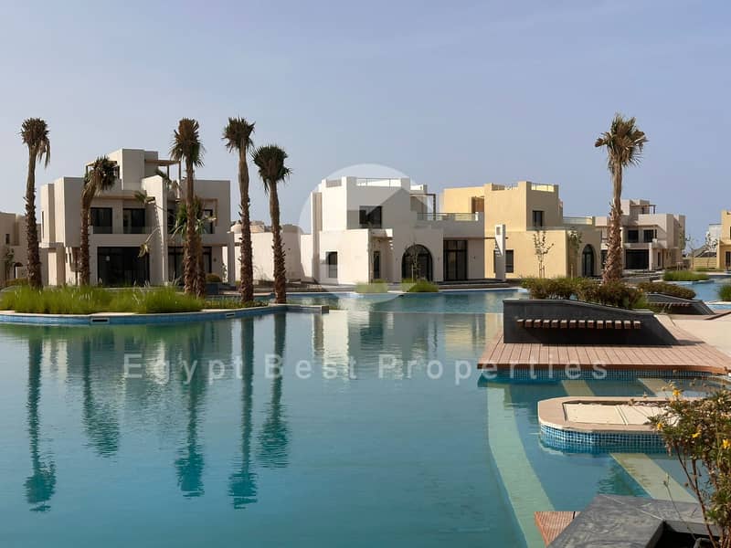 Own Your Villa In new Gouna Frist Row Fully Finished With kitchen Cabin Offer 0% Down Payment