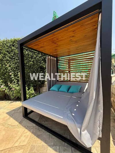 For rent, luxury hotel-style villa Model F, fully furnished, in the most prestigious phases of Madinaty – VG1. Building area: 360 m², Number of rooms: 4 bedrooms – Number of bathrooms: 4. Wide garden view, prime location inside VG1. Very quiet and distinguished location, Super Lux finishing + fully luxurious hotel furnishings with air conditioning.