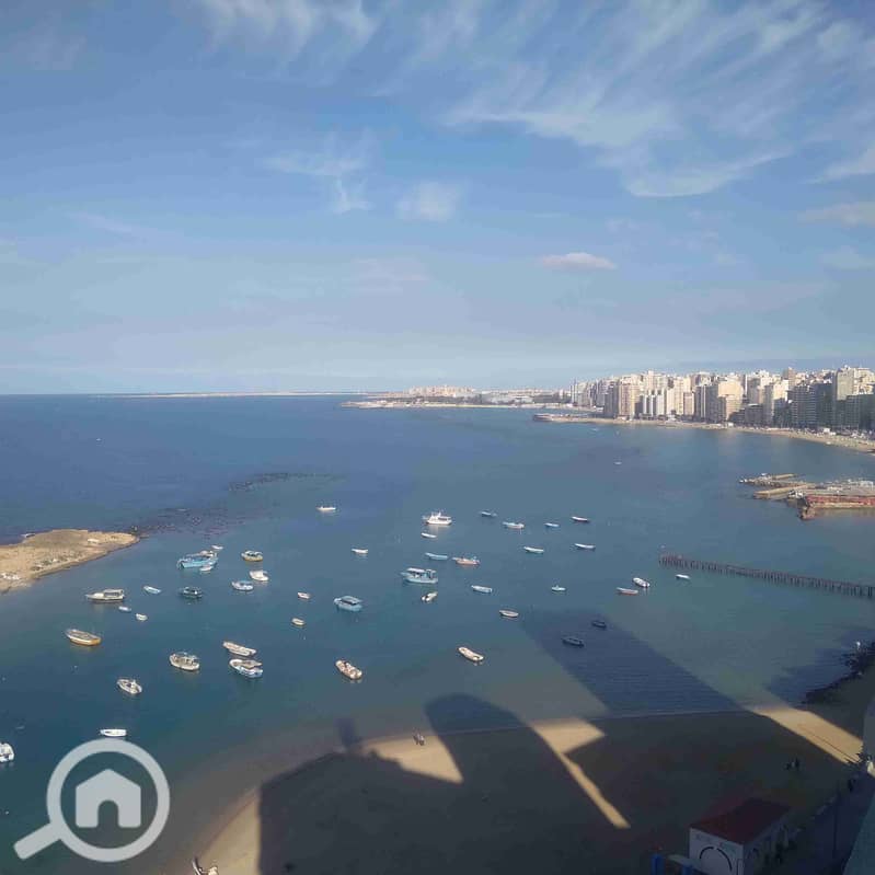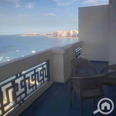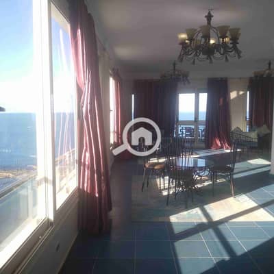 200 sqm fully furnished apartment, fully air-conditioned, directly on the sea, with 3 bedrooms, 4 receptions, and 2 bathrooms for 1500 EGP per day.