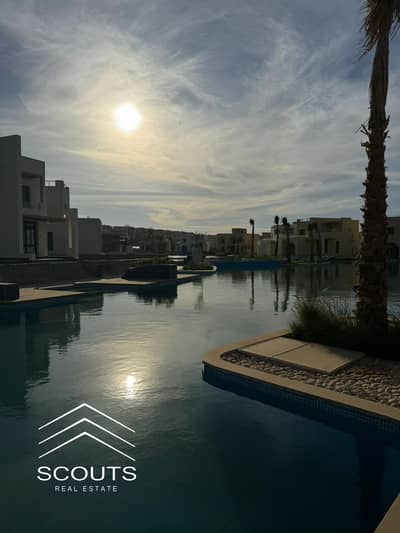 For sale: First row on the lagoon and sea, a fully finished chalet with air conditioning and a kitchen, ready for viewing in El Gouna, Swan Lake Village.