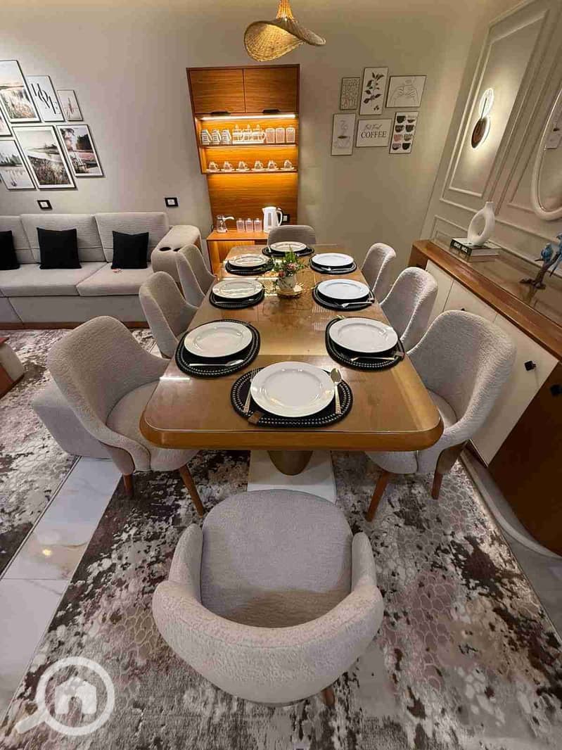 Luxurious apartment for first-time rental, monthly, featuring two bedrooms and 2 bathrooms with a two-piece reception area, fully air-conditioned and equipped with all modern appliances and internet. Located in Mohandessin near Shehab and the Arab League, close to Cairo University and all services. The building is luxurious with security and 2 elevators, on the fourth floor, suitable for youth and students.